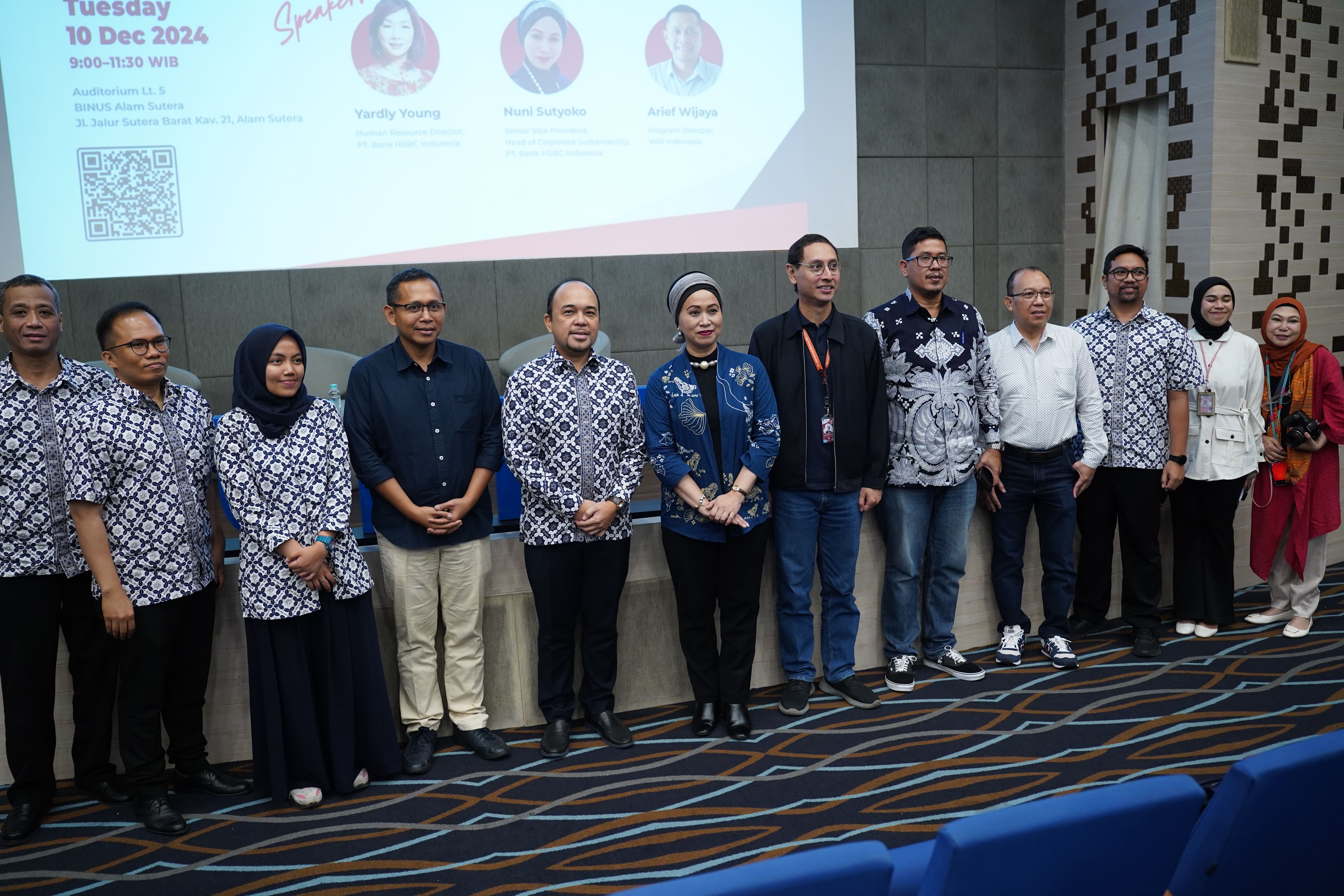 Berbekal alasan tersebut, BINUS Business School Executive Education mengadakan guest lecture yang mengundang sejumlah pembicara dari Bank HSBC pada tanggal 10 Desember 2024 di Auditorium BINUS @Alam Sutera, Tangerang. Daftar narasumber tersebut terdiri dari Yardley Young (Human Resource Director PT Bank HSBC Indonesia), Nuni Sutyoko (Senior Vice President dan Head of Corporate Sustainability PT Bank HSBC Indonesia), dan Arief Wijaya (Program Director WRI Indonesia).