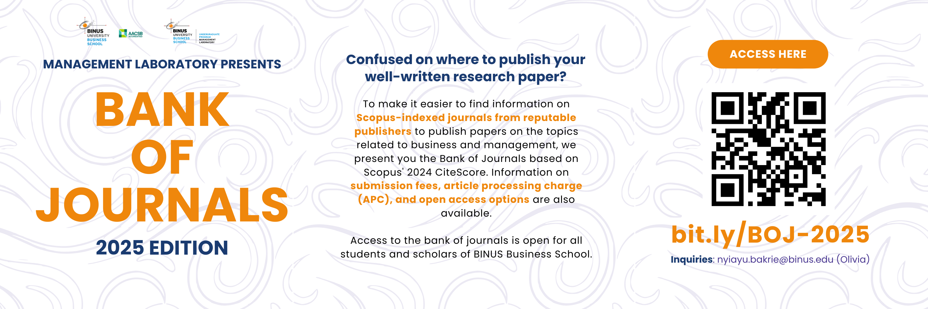 Access to the bank of journals is open for all students and scholars of BINUS Business School.