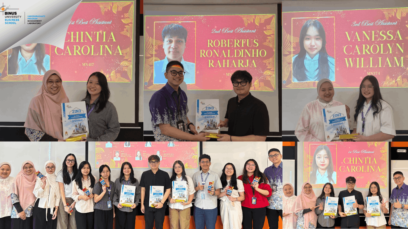 Management Laboratory dengan antusias mengumumkan daftar Asisten Berprestasi Semester Ganjil 2025/2026 sebagai bentuk apresiasi atas dedikasi dan kontribusi terbaik dalam kegiatan pengajaran. Penghargaan ini diberikan kepada Chintia Carolina, Robertus Ronaldinho Raharja, dan Vanessa Carolyn William yang telah menunjukkan kinerja unggul serta komitmen tinggi selama menjalankan peran mereka. Proses seleksi dilakukan secara komprehensif melalui sejumlah indikator penting, meliputi nilai IKAA (Indeks Kinerja Asisten Akademik) yang merefleksikan kepuasan mahasiswa, EJA (Evaluasi Jasa Asisten) yang menilai mutu pelayanan dan pendampingan akademik, serta aspek dedikasi, profesionalisme, dan kontribusi aktif dalam mendukung operasional Management Laboratory. Asisten yang terpilih berhasil menampilkan performa terbaik melalui metode pengajaran yang kreatif, tanggung jawab yang konsisten dalam setiap tugas, serta kedisiplinan yang tinggi. Capaian ini mencerminkan standar kompetensi dan kualitas yang menjadi tolok ukur seorang asisten profesional.