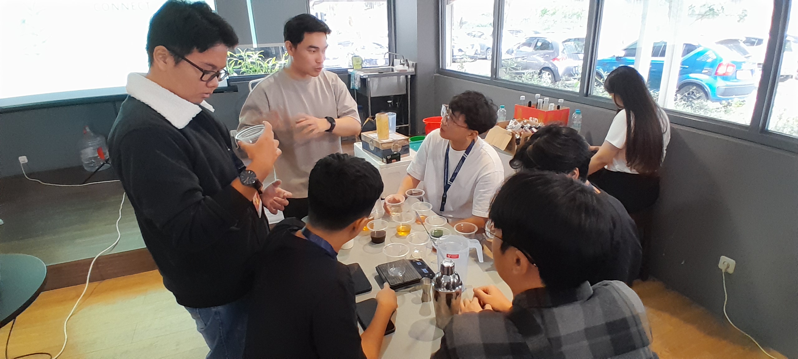 Setelah materi selesai, para mahasiswa yang dibagi ke dalam 5 kelompok dipersilakan untuk menggunakan bahan yang disediakan oleh Pak Allan dan timnya untuk meracik minuman khas mereka. Bahan-bahan tersebut terdiri atas whipped cream, liquid espresso, liquid jasmine green tea, powder, dan 20 macam sirup. Kehadiran beragam bahan minuman ini membuat mahasiswa dapat berkreasi secara bebas sesuai dengan ide dan kreativitas mereka. Setiap campuran minuman dapat mereka coba terlebih dahulu sebelum sampai pada racikan yang sesuai. Proses kreasi pun menjadi lebih hidup dan menyenangkan.