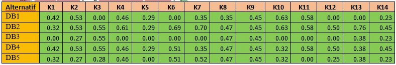 Sehingga, dihasil matriks yang ternormalisasi (R) :