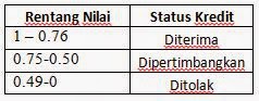 Sehingga dapat diambil kesimpulan jika yang berhak mendapat kredit sesuai dengan rentang nilai yang sudah ditentukan adalah :