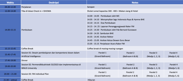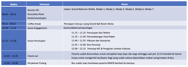 | 1. | Peserta wajib mengikuti semua acara dalam Raker |