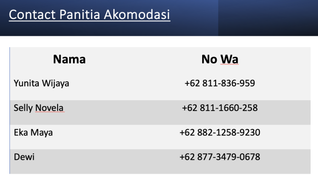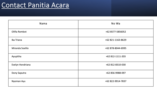 | 2. | Peserta wajib hadir tepat waktu di setiap acara |