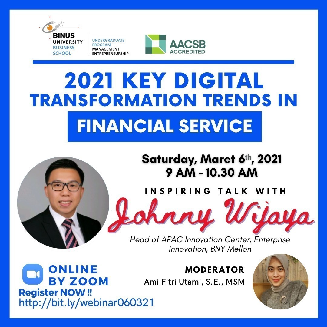 BBS UP kembali mengadakan training series “Transformasi digital” ke 2 dengan judul 2021 Key Digital Transformation Trends in Financial Services by Johnny Wijaya, Head of BNY Mellon APAC Innovation Center”