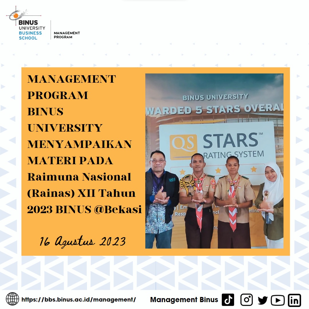 Halo Leaders! 16 Agustus 2023 di BINUS @Bekasi, Bapak Dicky Hida Syahchari, S.T., M.M., Ph.D & Ibu Dr. Enggal Sriwardiningsih, S.E., M.Si. dari Management Program BINUS University membawakan berkesempatan untuk berfoto dengan peserta dari Papua dan membawakan materi untuk pramuka Penegak dan Pandega dalam acara Raimuna Nasional XII 2023. Semangat dari adik-adik terasa sepanjang acara berlangsung. Sukses selalu untuk adik-adik Pramuka Penegak & Pandega seluruh Indonesia. Salam Pramuka