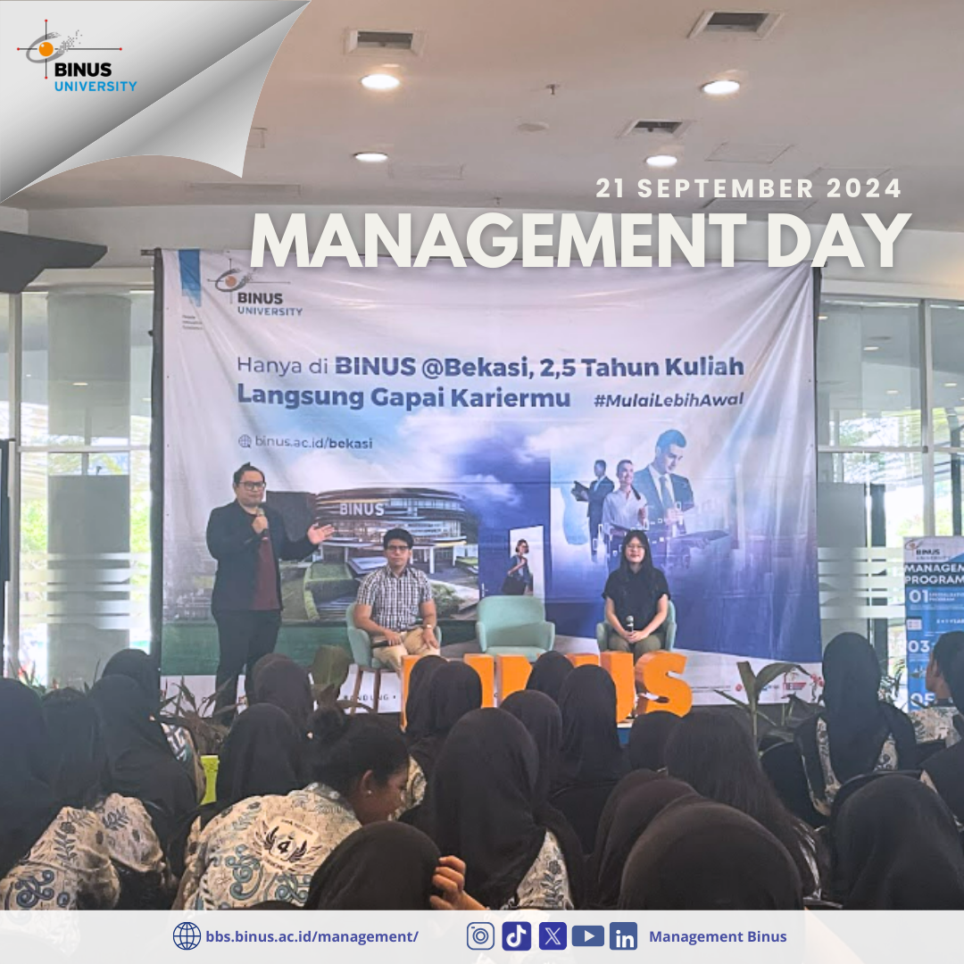 21 September 2024 berlangsung event Management Day di BINUS@Bekasi. Event rutin setiap tahun ini bertujuan untuk dekat lebih awal dengan calon mahasiswa, memberikan pengalaman langsung mengenai apa dan bagaimana belajar di jurusan manajemen, interaksi dengan mahasiswa aktif dan alumni manajemen, campus tour, fun games sembari belajar, dan berbagai kegiatan seru, asik dan beken lainnya.!! 🤩🎉