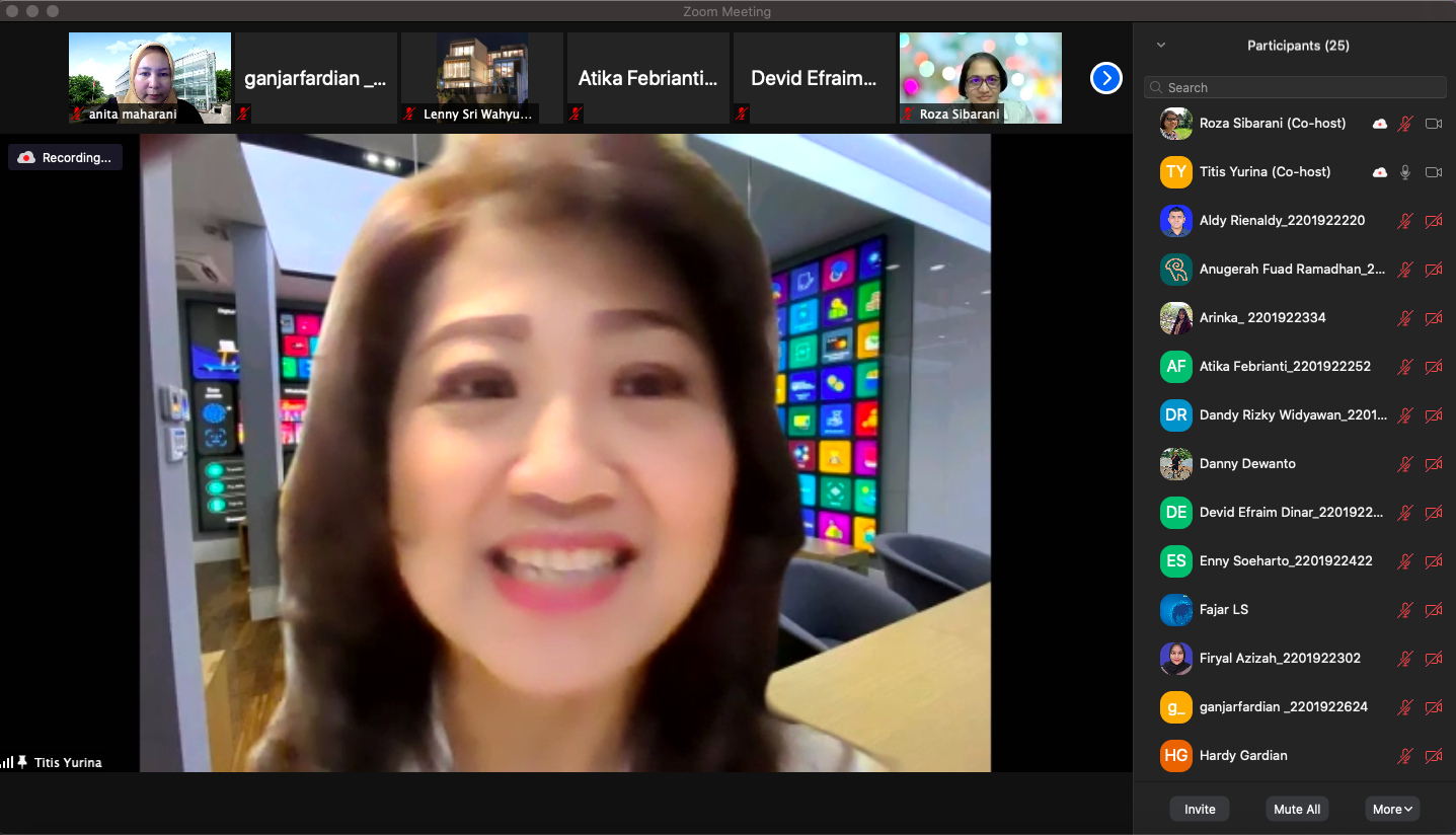 HomeGalleryGuest Lecture 30th March 2021: Titis Yurina, Div. Head, Head HR Bank Permata Guest Lecture 30th March 2021: Titis Yurina, Div. Head, Head HR Bank Permata 30 Mar 2021 Gallery Vini Marianie Vici Share to your friends Cancel Reply