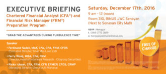 EXECUTIVE BRIEFING CHARTERED FINANCIAL ANALYST (CFA) AND FINANCIAL RISK MANAGER (FRM) PREPARATORY PROGRAM: “GRAB THE ADVANTAGES DURING A TURBULENT TIME”
